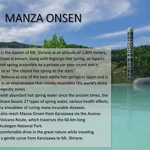 The hotel in the historic district of Tsumagoi enjoys the proximity of tourist attractions such as Ushiike, which stands 250 metres away. From the Manza Prince it will take about 25 minutes to walk to Yugama.